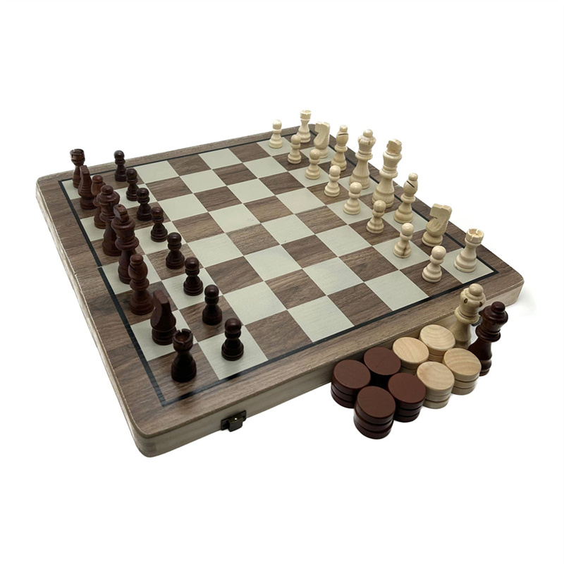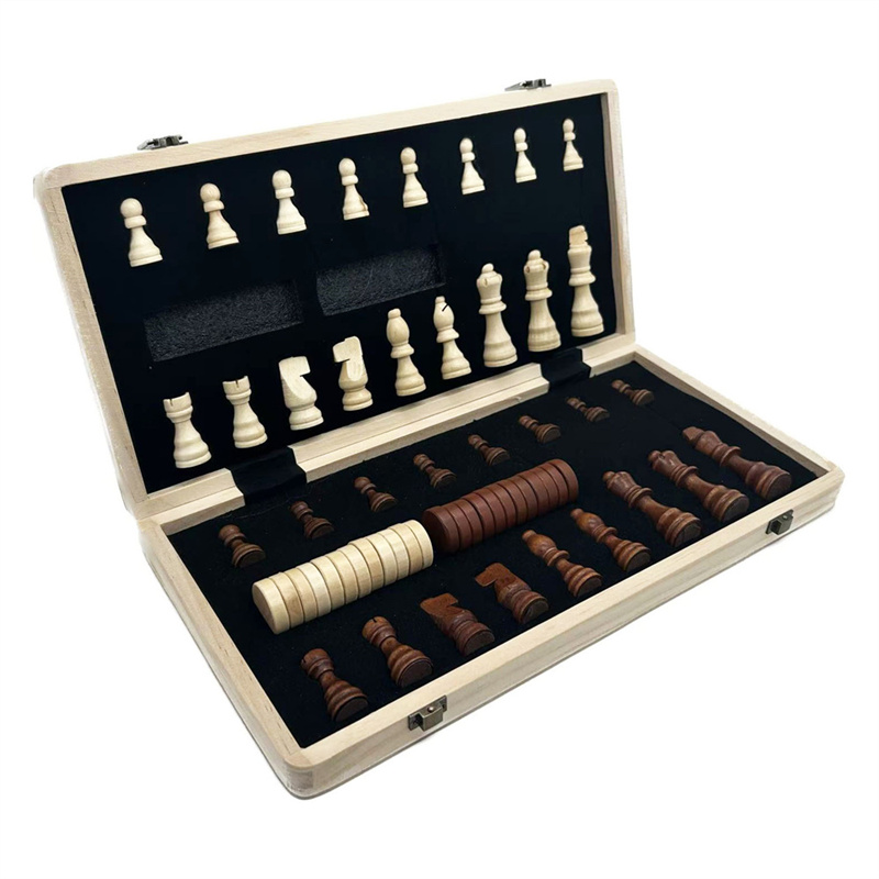| Description: | 2 in 1 Folding Magnetic wooden chess and checkers board set including 32 chess pieces+2 extra queens+24 checkers |